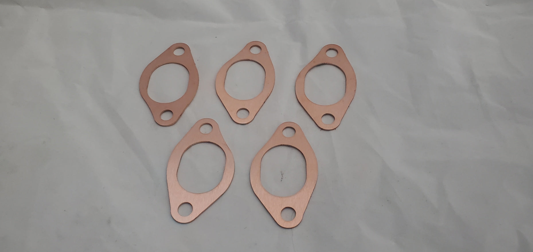 C110 copper exhaust manifold gaskets for your 10v or 10vt. These have been annealed in house to provide the right softness for sealing. These will handle more heat and last longer than the factory gaskets. These are heavy duty .063" thick so they can handle abuse.