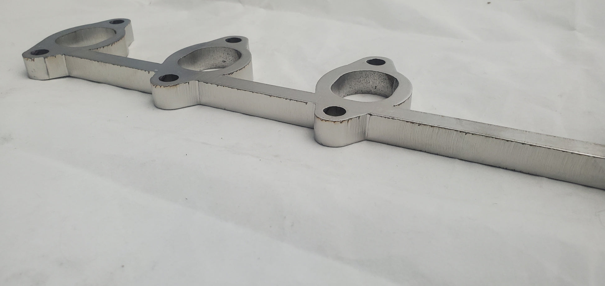 Strongly recommended that you use a spare head to bolt this on to while doing your welding to prevent warping (ask us how we know). Once welded up, cut the rectangular connection between the ports (will prevent stress between runners).